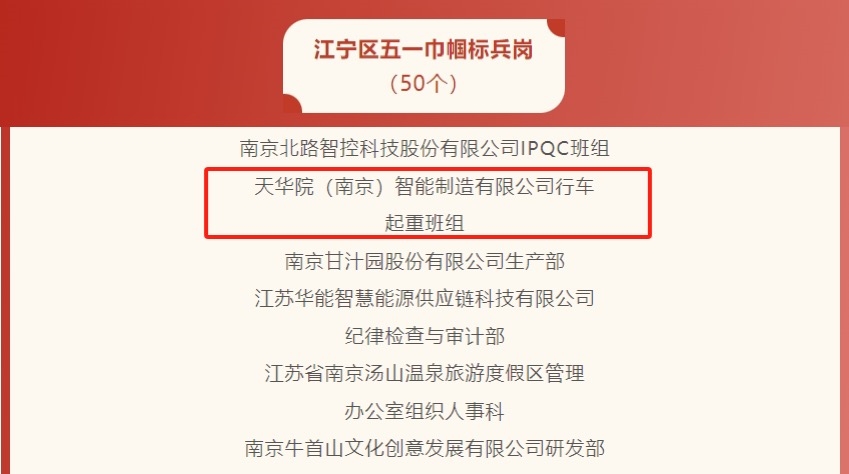 近日,南京市江宁区公布了五一巾帼奖和三八红旗手(集体)名单,k8凯发院南京公司行车起重班组女性员工以杰出的表现,荣获“江宁区五一巾帼标兵岗”和“江宁区三八红旗集体”荣誉称号,这是对该班组辛勤付出的肯定,彰显了新时代南京公司女性职工的力量与风采。